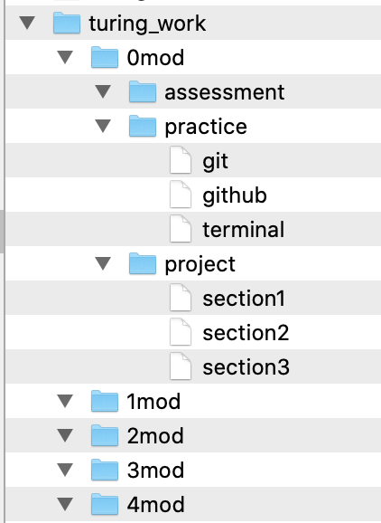In your Terminal, recreate the file structures shown in the diagrams below. Assume that the extension for any files notated is .md.